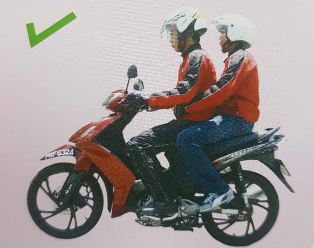- Pembonceng hendaklah duduk rapat dengan penunggang