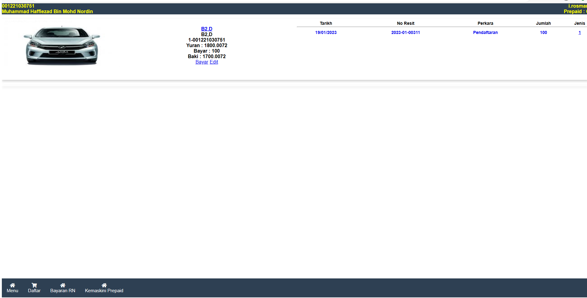 Klik Kemaskini Prepaid Untuk Mengemaskini Prepaid Calon