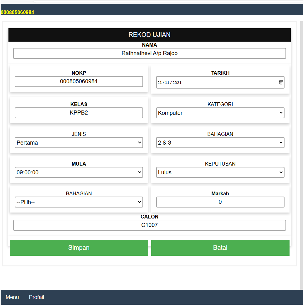 Pengguna boleh mengemaskini rekod kehadiran ujian calon