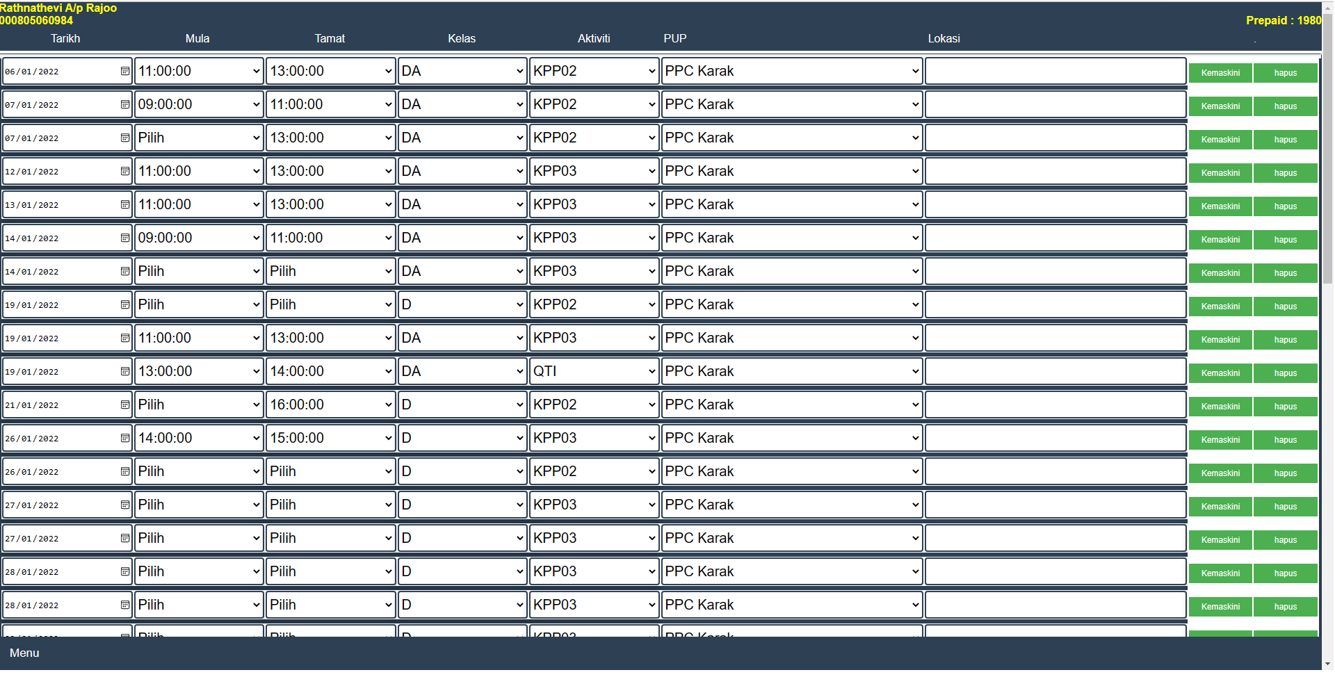 Skrin ini memaparkan rekod pengangkutan calon yang dipilih.