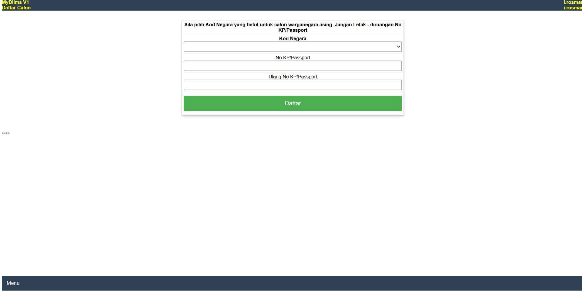 Bagi Pelajar Warga Asing , pengguna perlu lah memilih negara asal berdasarkan passport mereka.