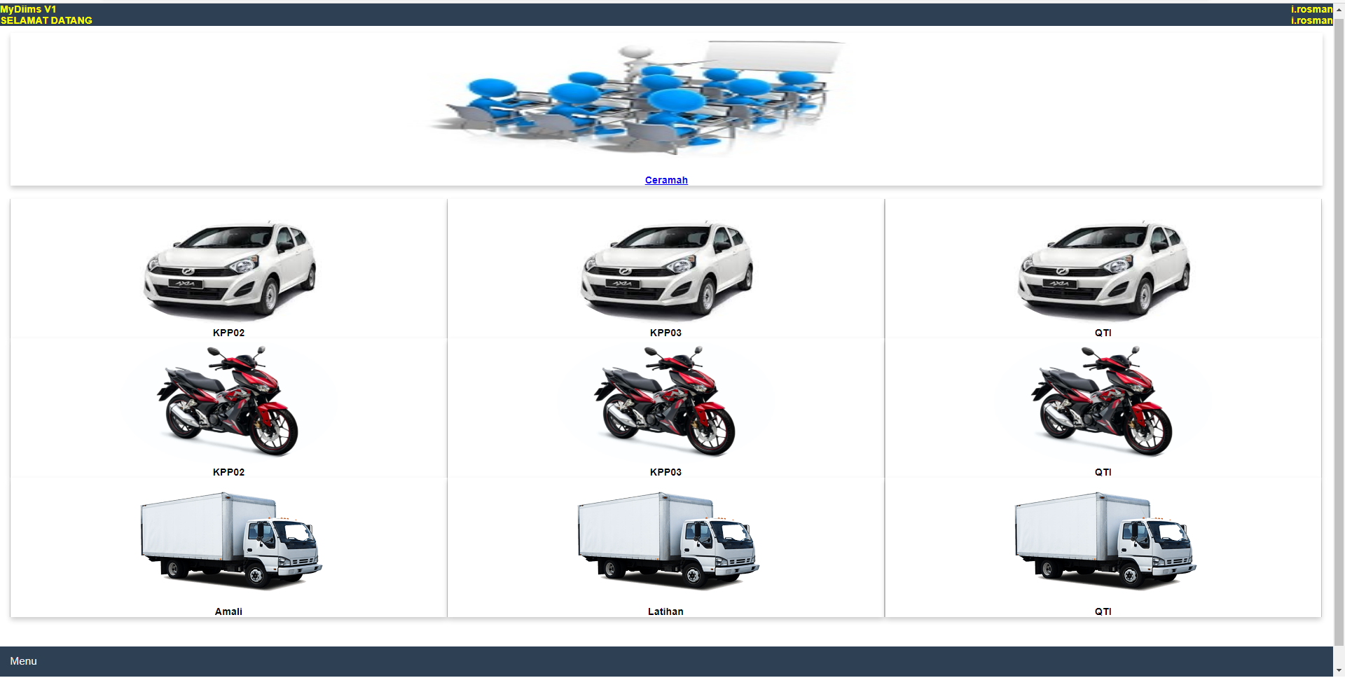 Skrin ini memaparkan menu pilihan untuk proses E-Driving