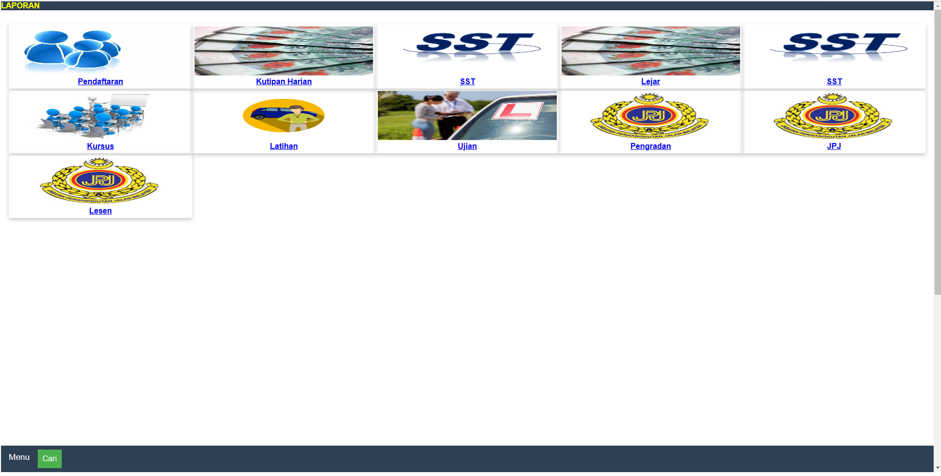 Skrin Ini Memaparkan Senarai Jenis Laporan Mengikut Kategori