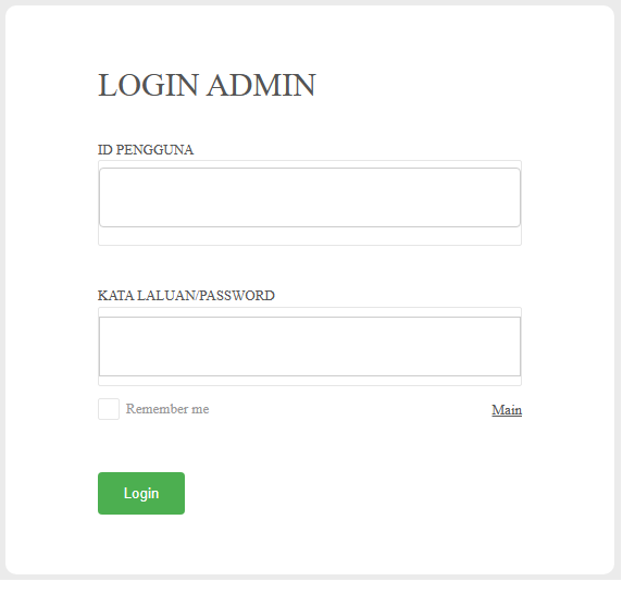 Sebelum Pengguna Memasuki Seksyen Admin , Anda haruslah memasukan