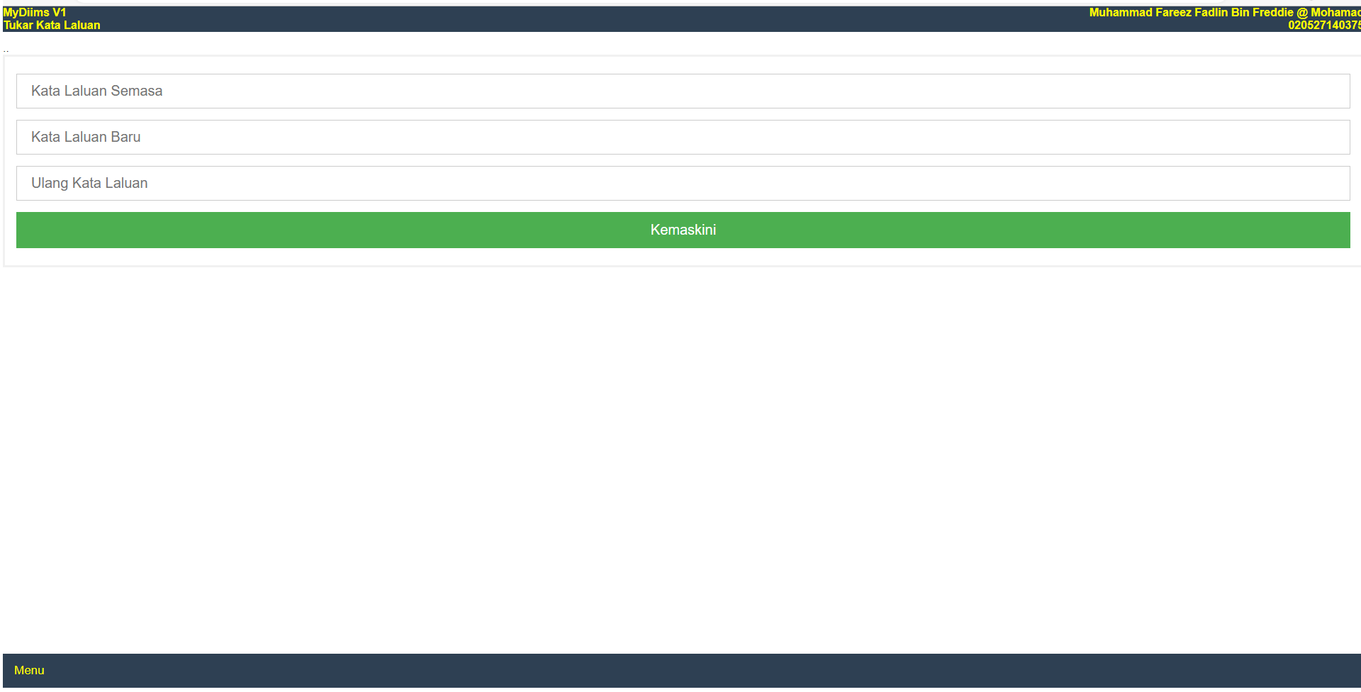 Klik Kemaskini Untuk Tukar Kata laluan Yang Baru